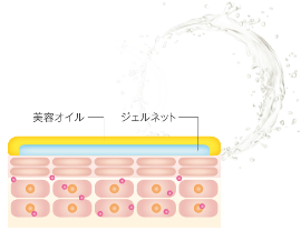 美容成分が角層に浸透すると、美容オイルが肌表面に広がり、つるんとなめらかな